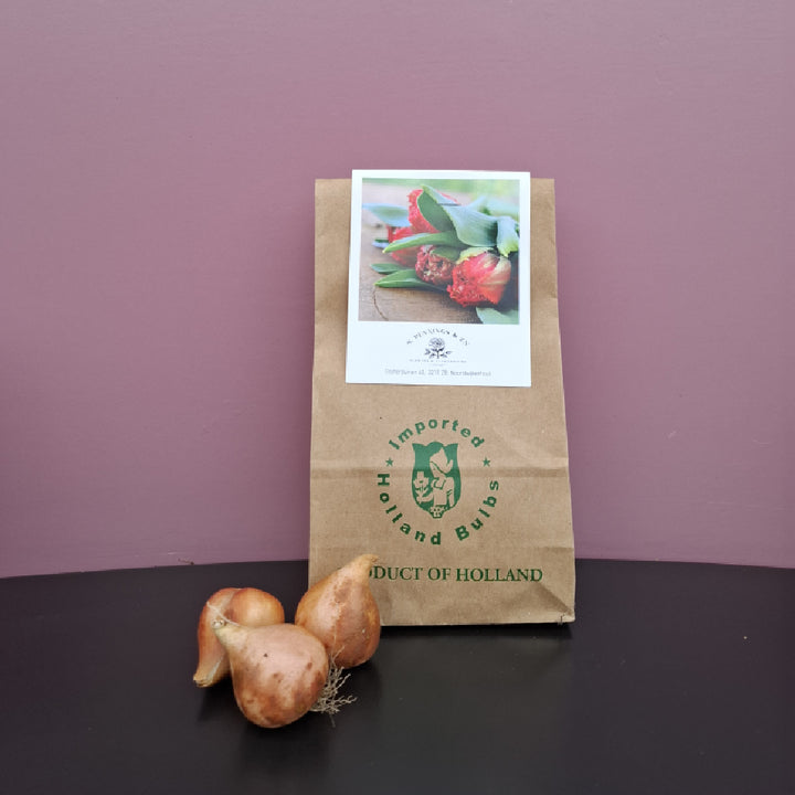 De Melbourne tulp is een rood/ roze dubbele tulp met franje aan het bloemblad.