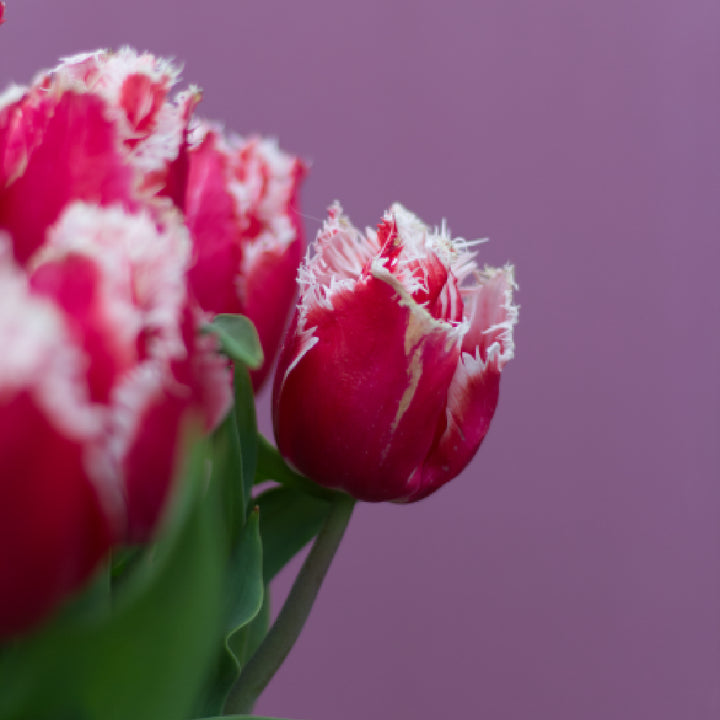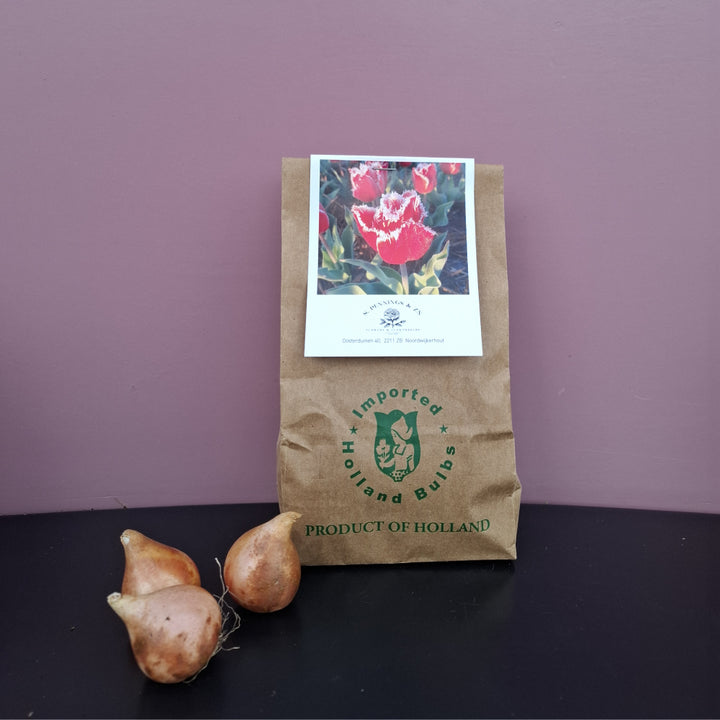 Een felroze enkele tulp met mooie witte franje. Deze tulp is perfect voor op de pot.